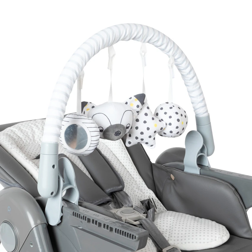 L’arche de jeux Modern Pop accompagne bébé pour des trajets divertissants et ludiques avec ses accessoires détachables pour jouer et développer sa motricité.