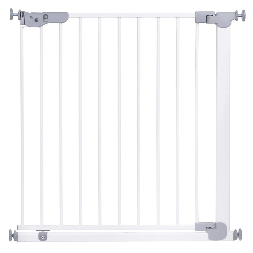 La barrière de sécurité Optimétal est compatible avec portes et escaliers grâce à sa largeur ajustable de 77,5 à 83,5 cm.