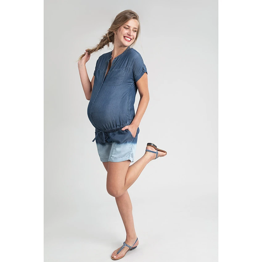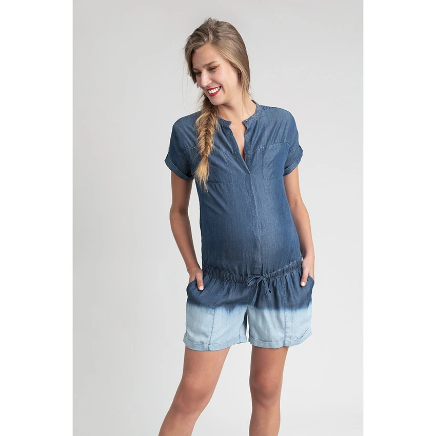 Combishort tie and dye en Lyocell. Col mao. Ouverture pressionnée devant. Cordons de serrage à la taille avec liens à nouer. 2 poches coupées devant. Revers aux manches et bas des jambes.