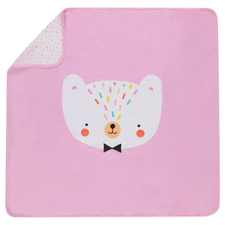 Couverture en jersey. 1 côté uni avec motif animal fantaisie.