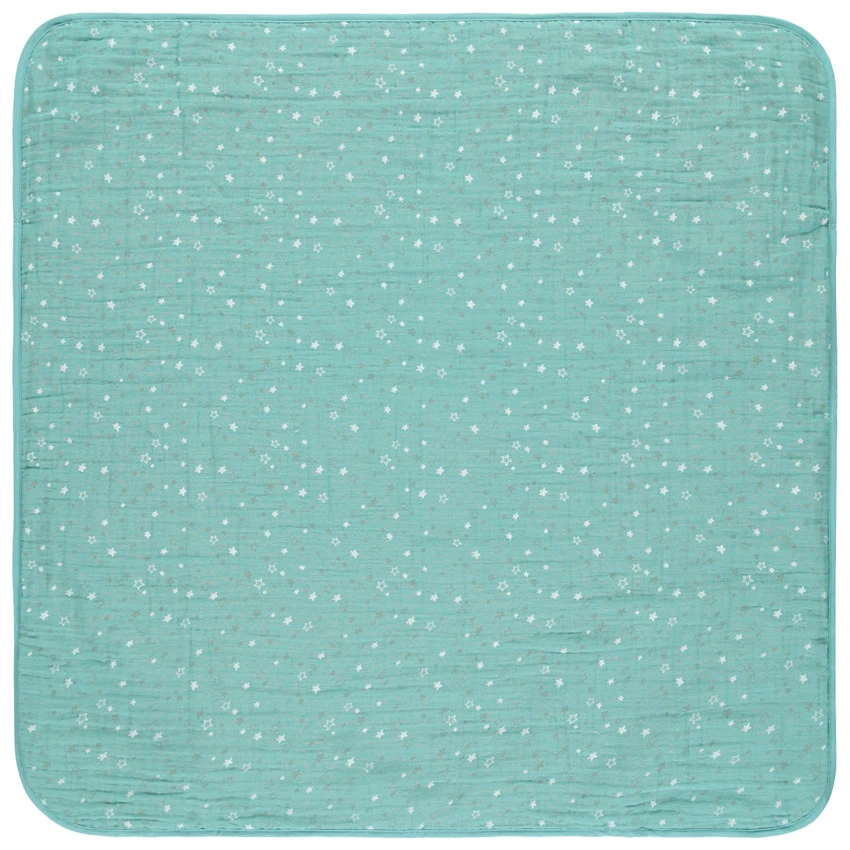 Couverture en gaze de coton imprimée étoiles. Revers uni.