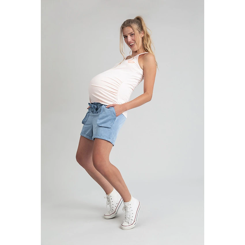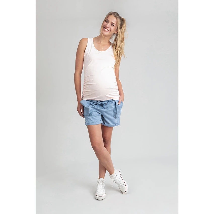 Débardeur de grossesse. Encolure ronde. Texte printé sur le devant. Fronces sur les côtés pour permettre au ventre d’évoluer. Dos uni.