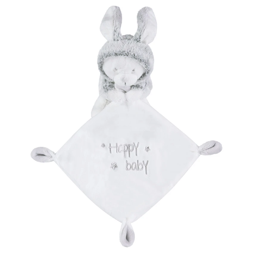 Doudou plat en velours. Lapin en peluche avec intérieur ouatiné. Détails brodés.