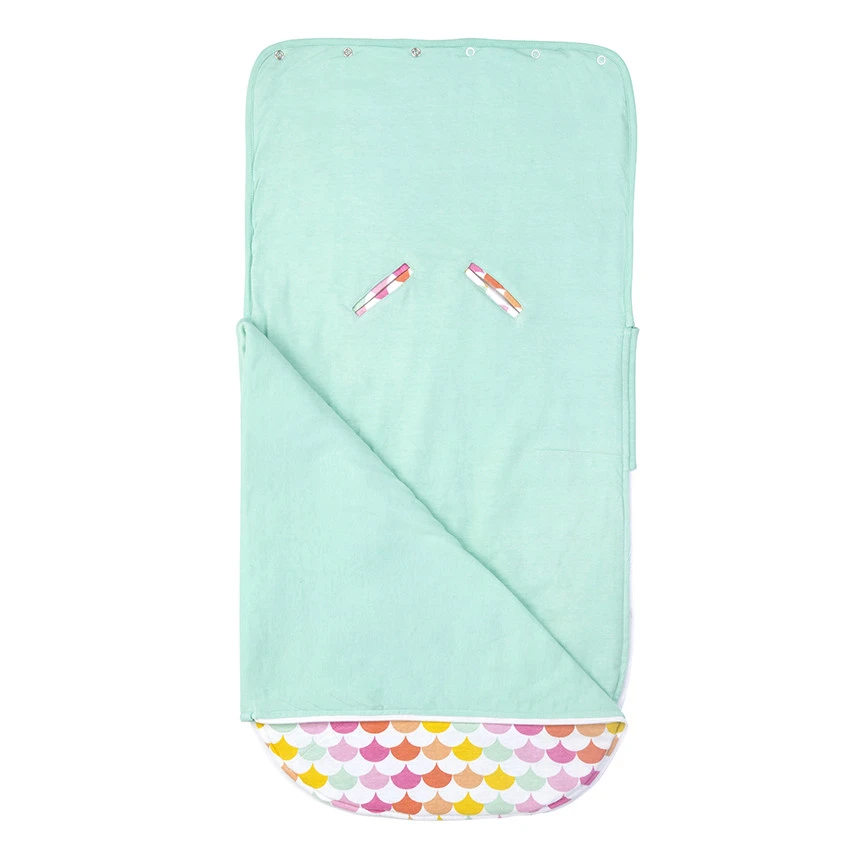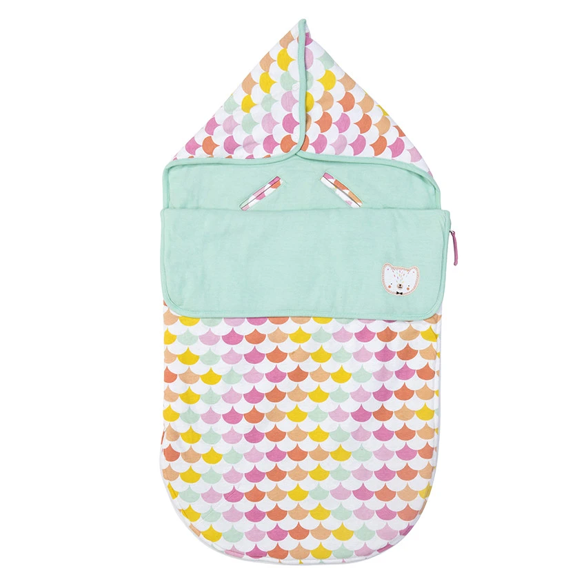 Nid d’ange en jersey imprimé all-over. Intérieur ouatiné. Doublure jersey. Capuche pressionnée. Passage pour les sangles. Revers uni avec patch animal sur le côté. Ouverture zippée sur le côté.