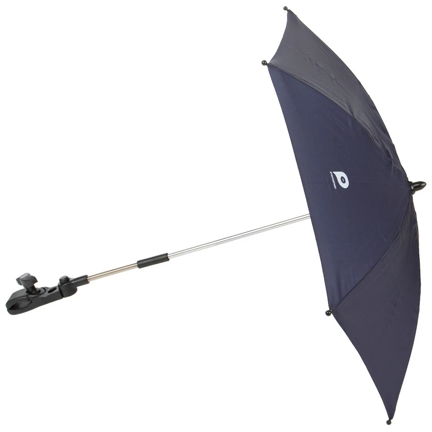 Ombrelle universelle orientable pour poussette, peut être détachée de son clip de fixation lors du pliage de la poussette.