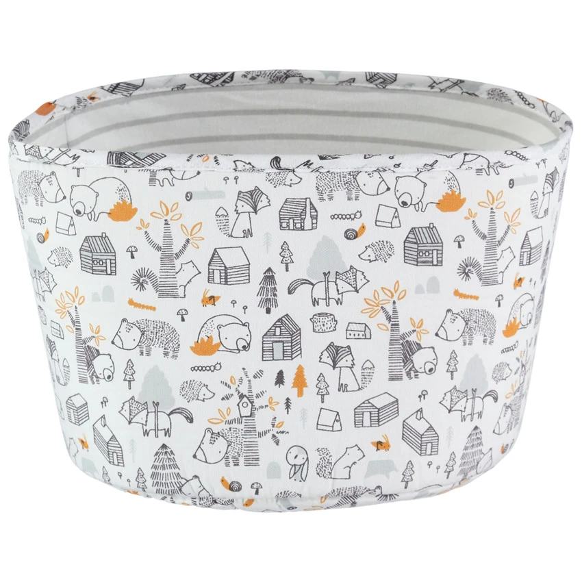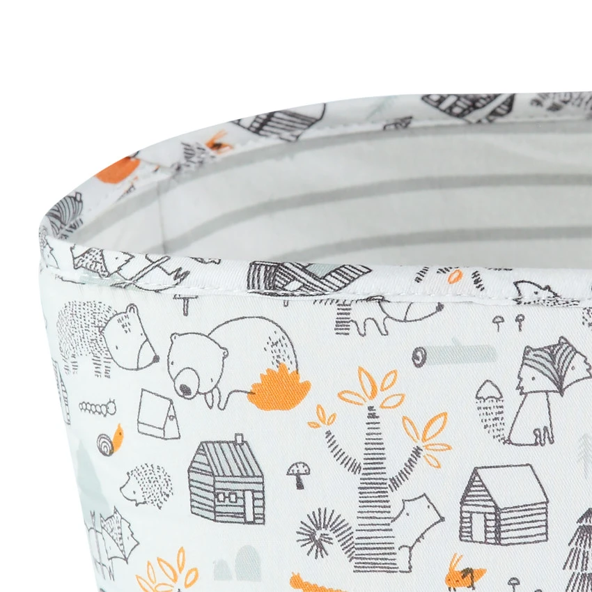 Un petit panier idéal pour la chambre de bébé ou votre espace à langer, il peut accueillir jouets, livres, peluches ou encore couches et lingettes. Léger, il est facilement transportable. Panier en popeline de coton avec imprimé animaux de la forêt.