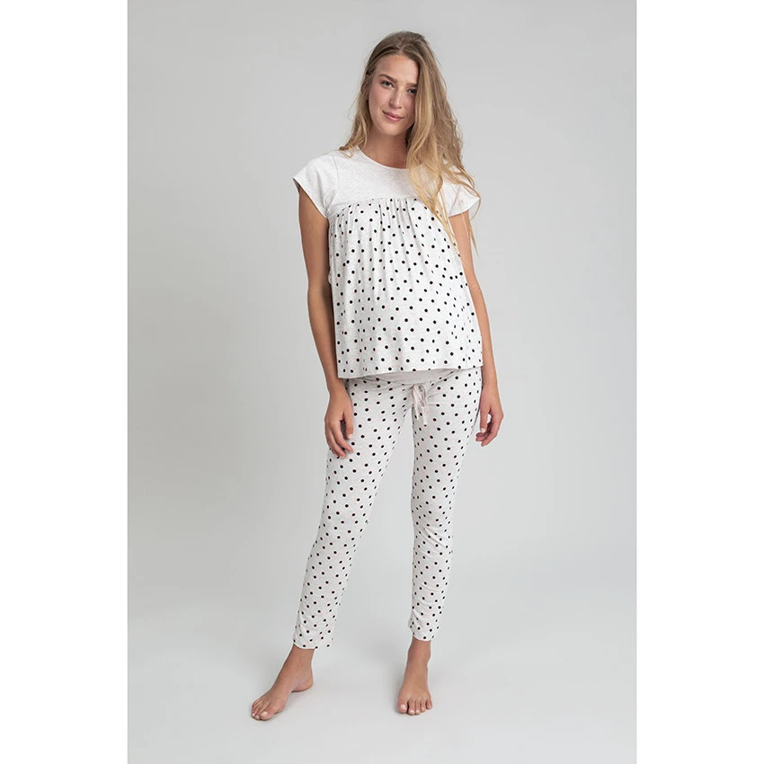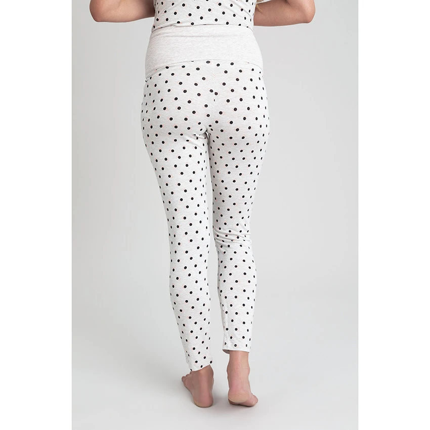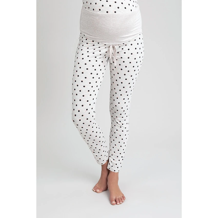 Pantalon de grossesse homewear. Bandeau haut. Cordons de serrage. Pois all-over.