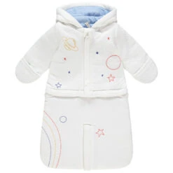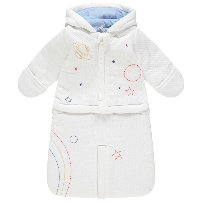 Pilote nid d’ange en maille imprimé planètes avec doublure en jersey. Broderies contrastées esprit espace.