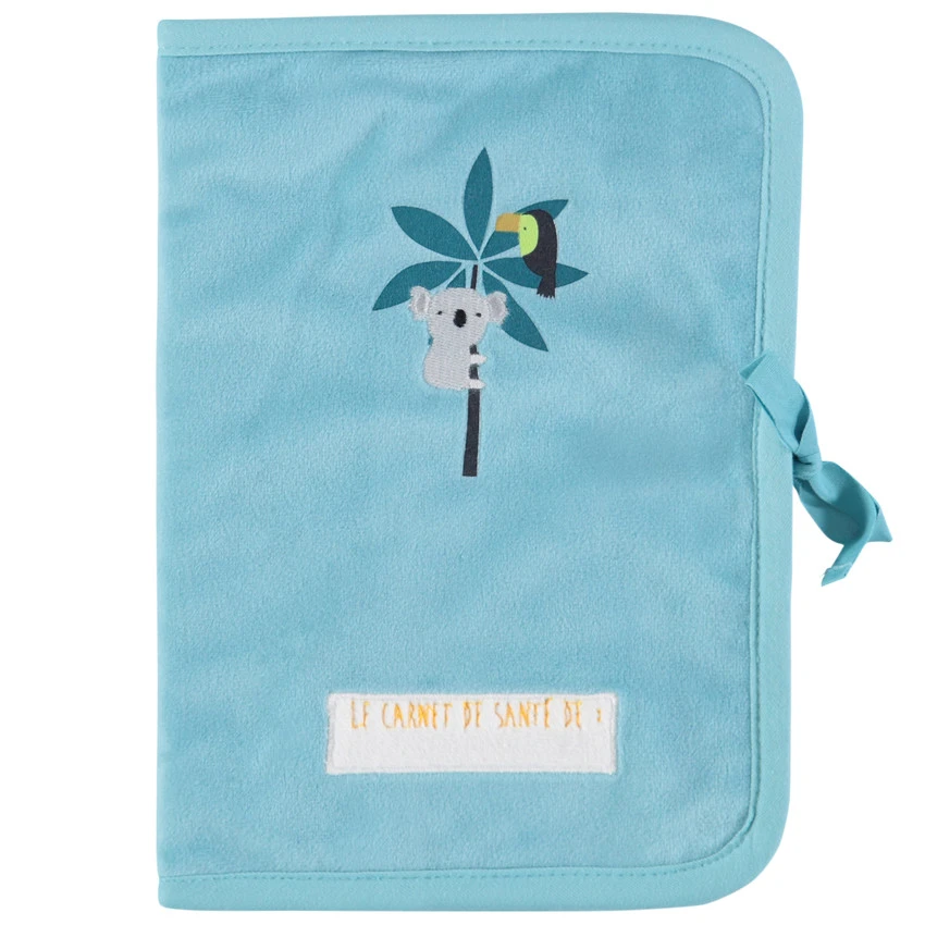 Protège carnet de santé en velours avec animaux de la jungle bordés.