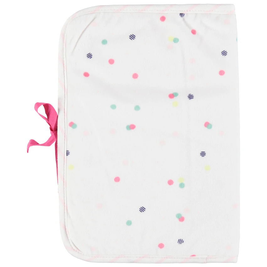 Protège carnet de santé en jersey avec une souris brodée et un imprimé à pois.