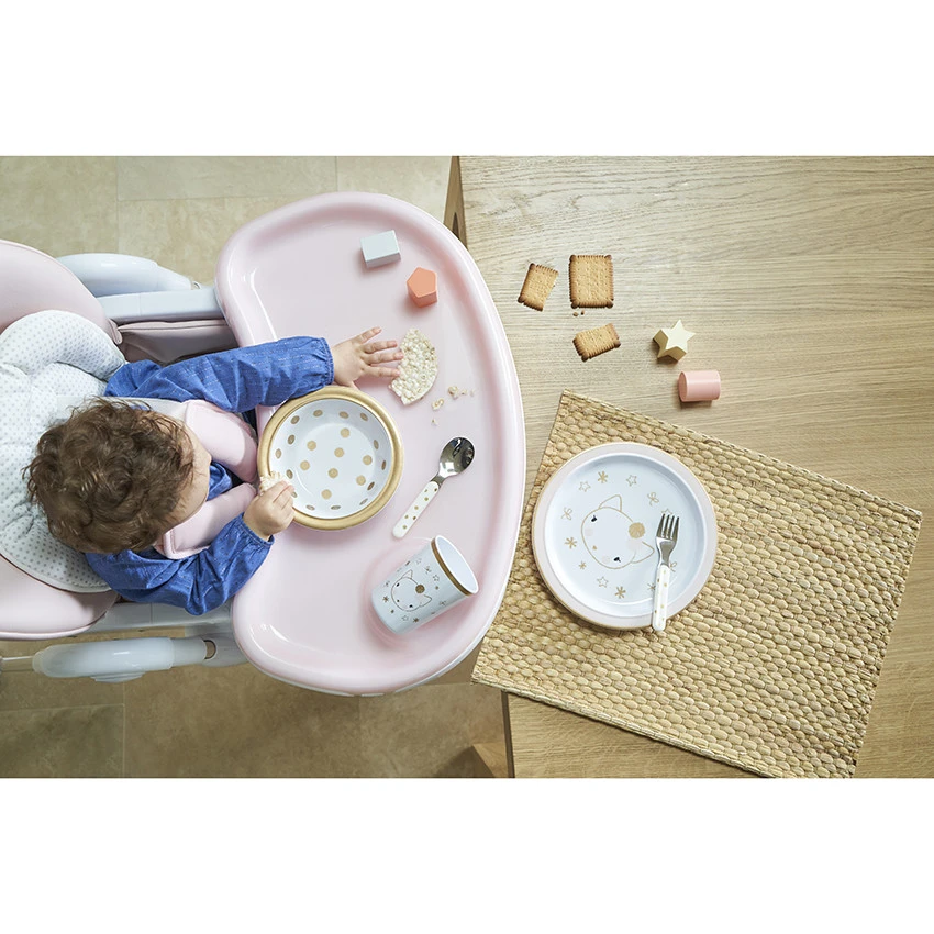 Le set repas en mélamine est compatible avec le lave-vaisselle.