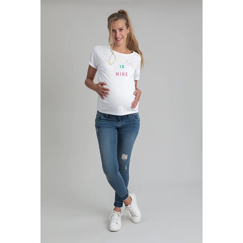 T-shirt manches courtes uni. Encolure ronde en bord-côte.Message printé sur le devant. Dos uni.
