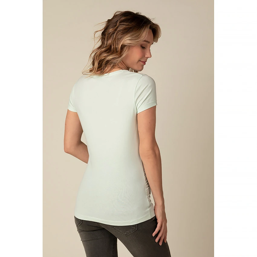 Un t-shirt manches courtes vert. Print fleur. Broderie « enjoy ». Col rond.