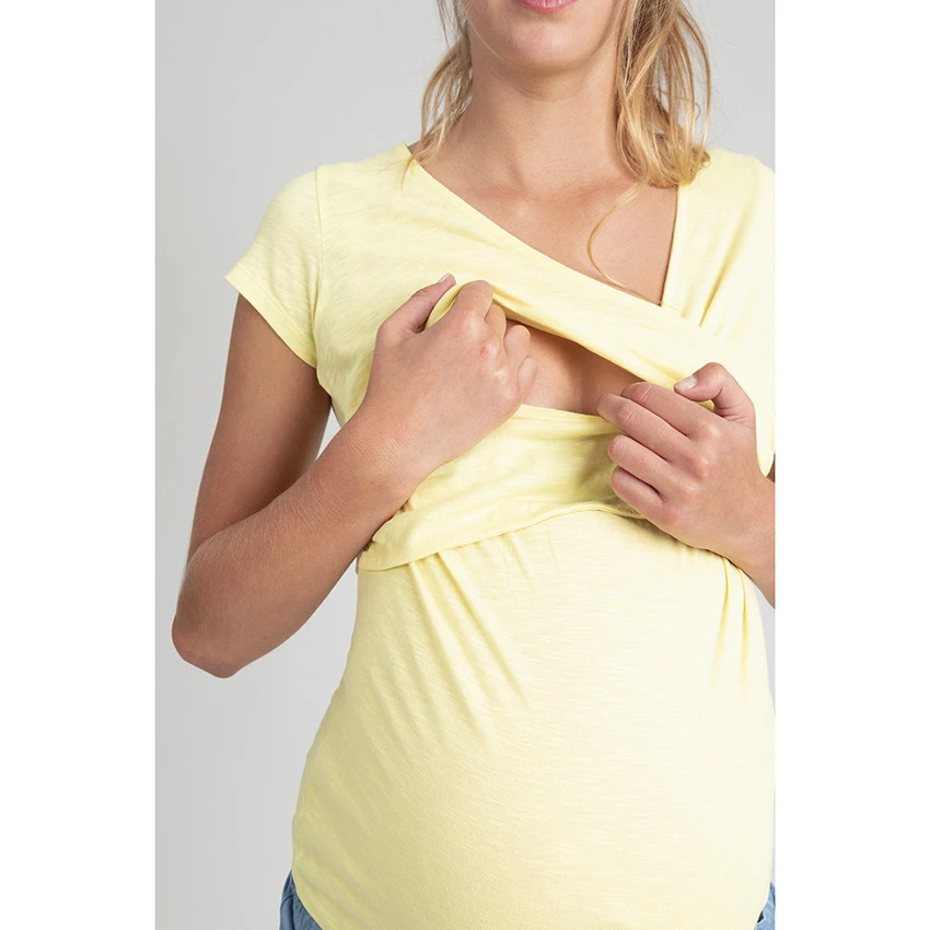 T-shirt manches courtes uni de grossesse et d’allaitement. Col croisé devant pour faciliter l’allaitement.