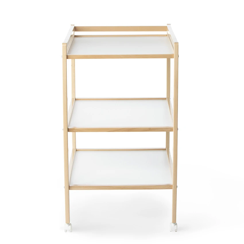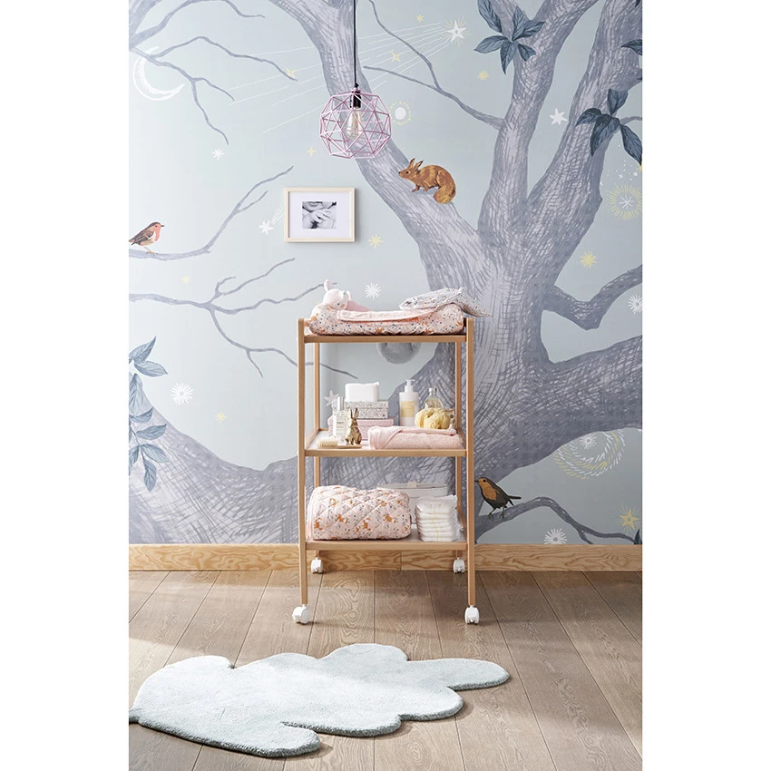 L’incontournable table à langer en bois. Ultra pratique grâce à ses quatre roulettes, elle se déplace facilement et s’intègre à tous les espaces.