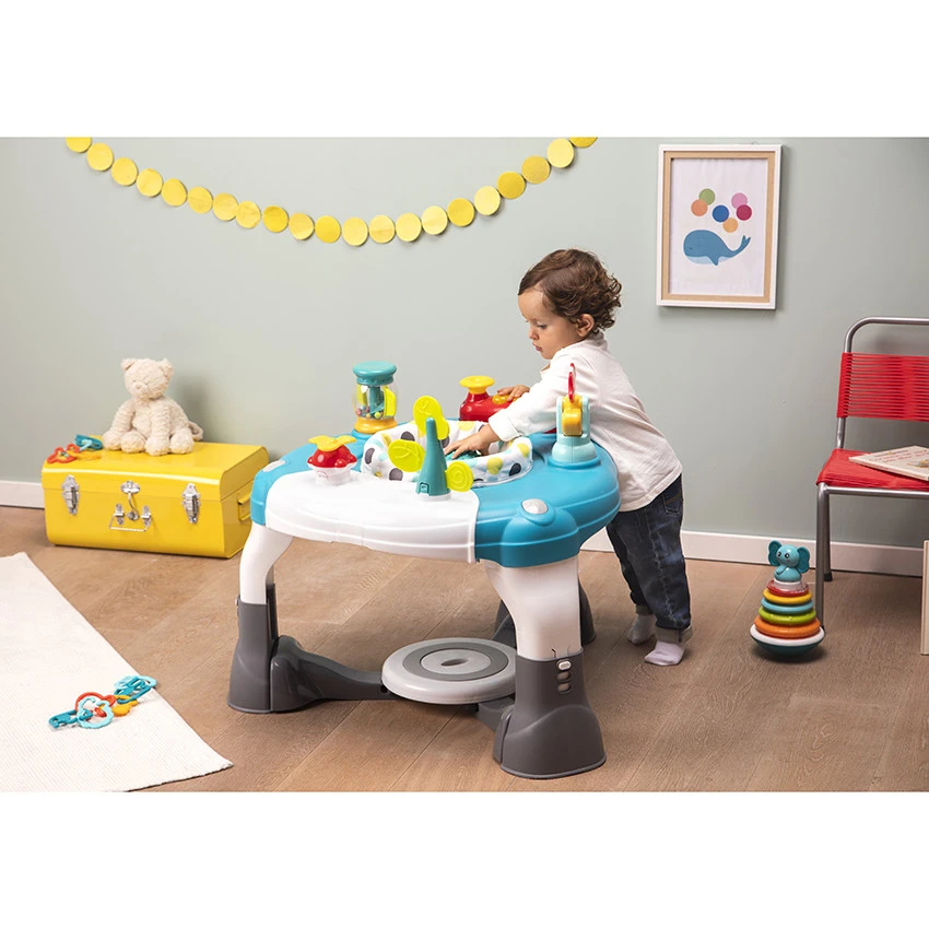 La table d’activités LILY permet de découvrir de nouvelles sensations : des activités sonores et musicales, des jouets colorés. Elle contribue à développer les sens de bébé.