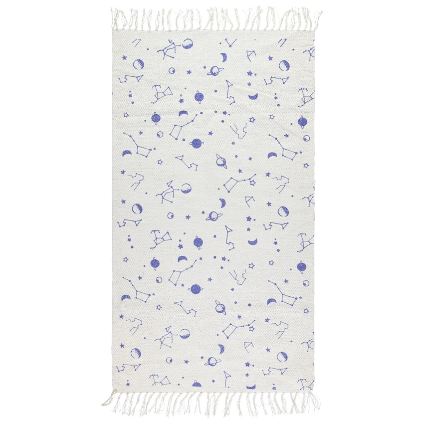 Décorez l’espace chambre de votre enfant avec le tapis de chambre tissé à franges imprimé planètes et fusées.