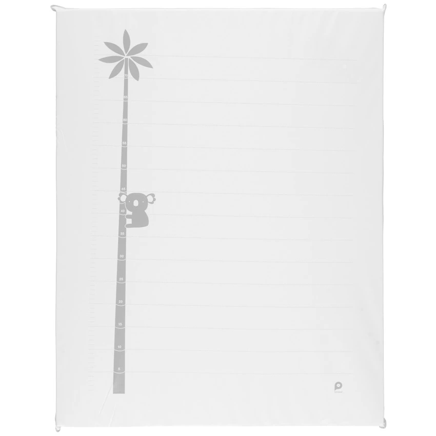 Le tapis de parc en PVC sans phtalates de Prémaman est fait à partir de matériau durable et solide. Il est pourvu d’une toise avec imprimé Koala pour mesurer la taille de bébé.