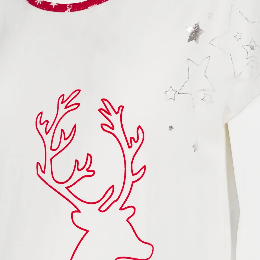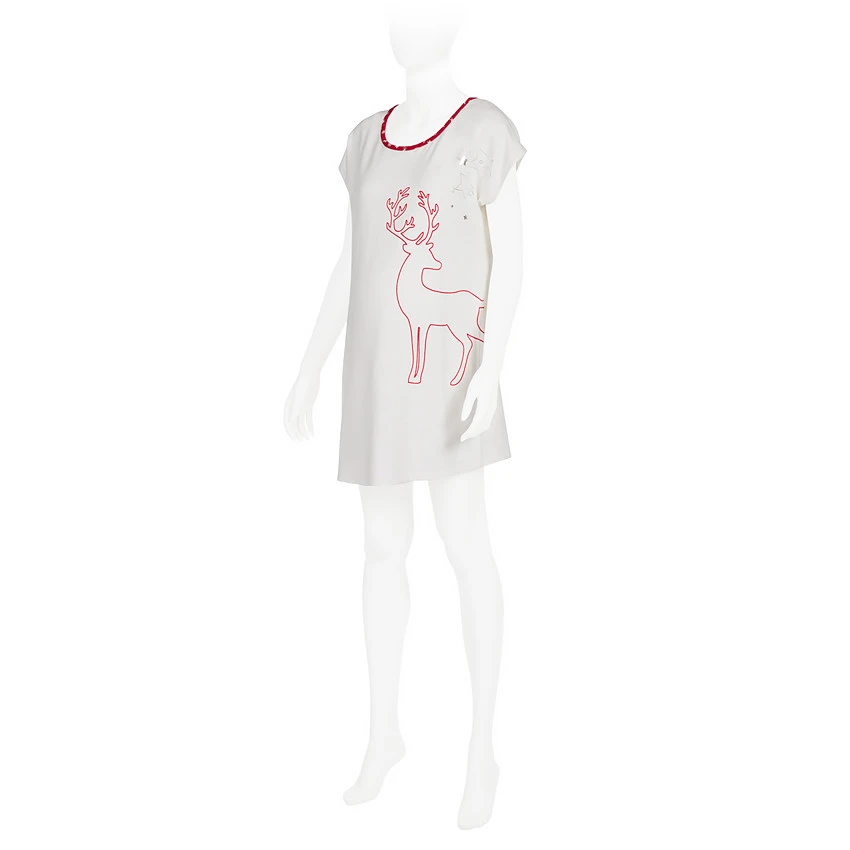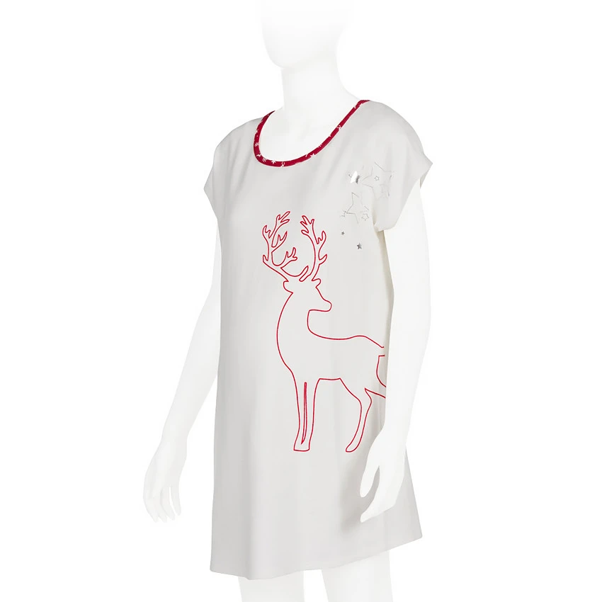 Tee-shirt large de grossesse manches courtes. Encolure ronde avec finition biais imprimé. Print Élan et étoiles argentées sur le devant. Emmanchures amples. Dos uni.