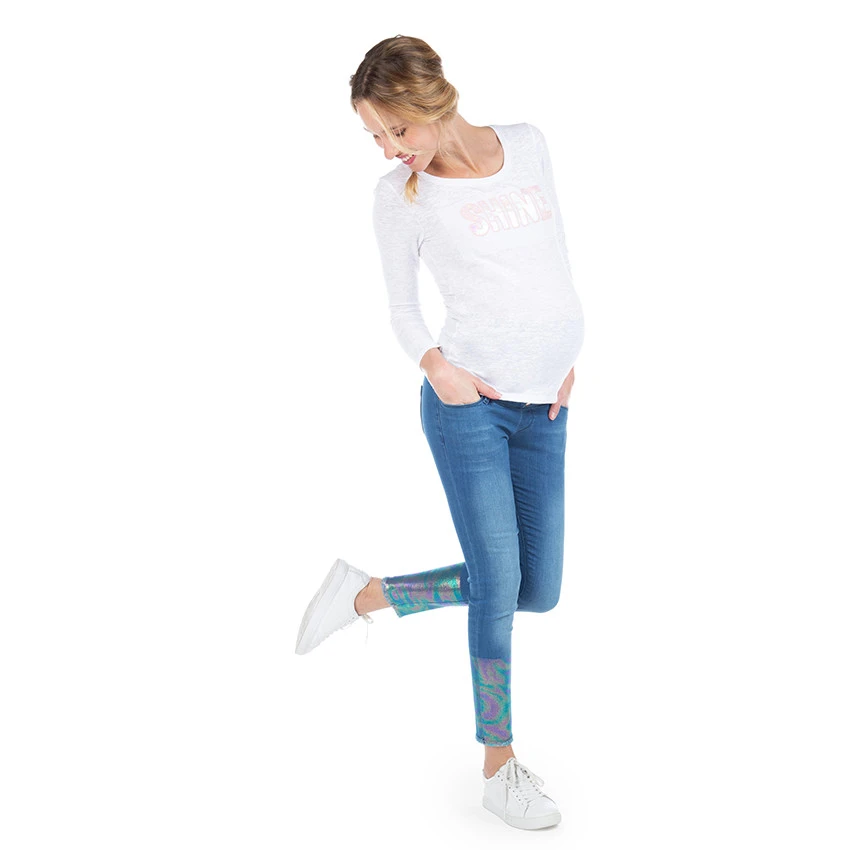 Tee-shirt manches longues en maille slub. Encolure ronde en bord-côte. Inscription iridescente sur le devant. Dos uni.