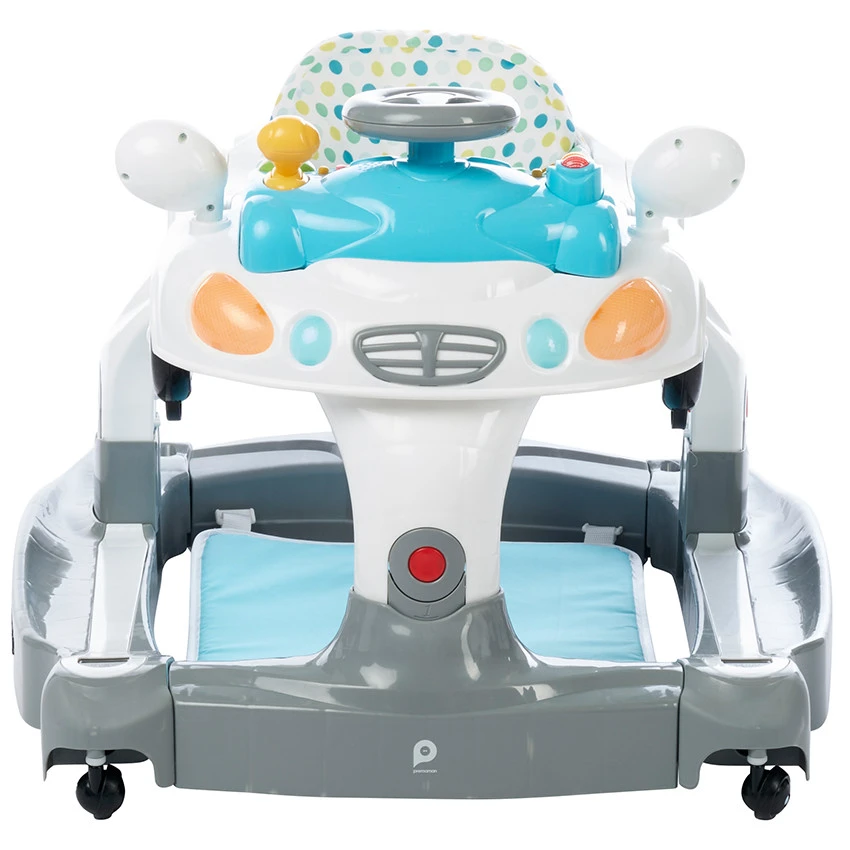 - Trotteur 4 en 1: trotteur, pousseur, balancelle et tablette de jeux roulante.