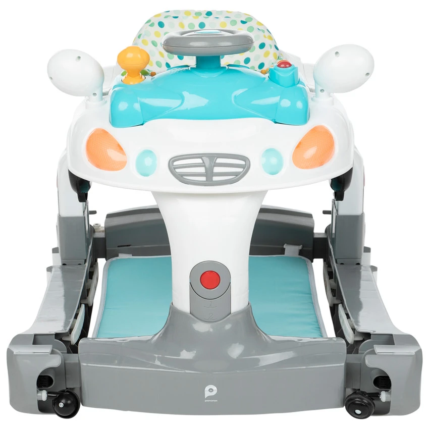 Jouer, se divertir, faire de la musique, développer sa motricité et se muscler les petites jambes de bébé c’est possible avec le trotteur multi Prémaman.