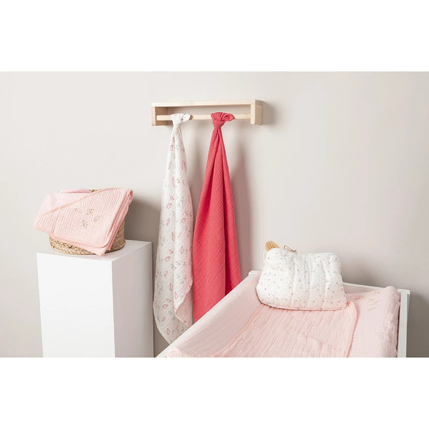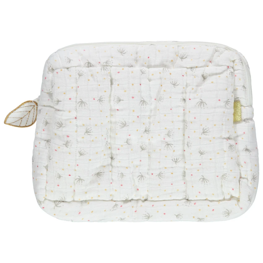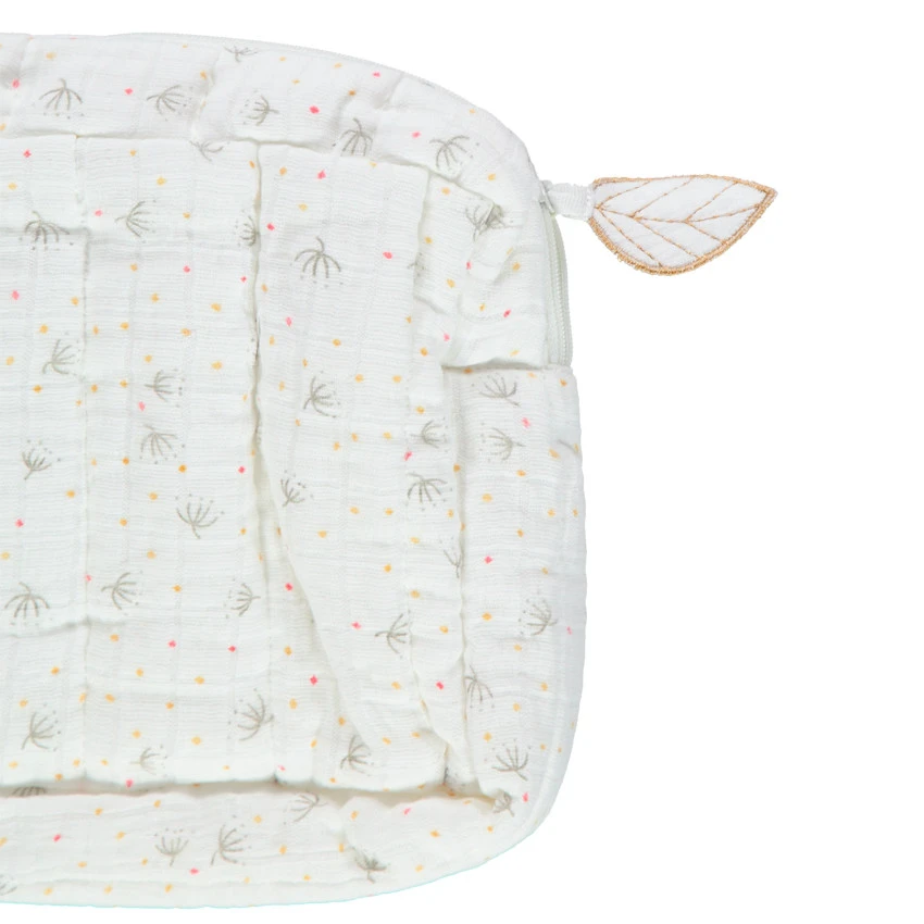 Trousse de toilette en gaze de coton imprimé végétal.